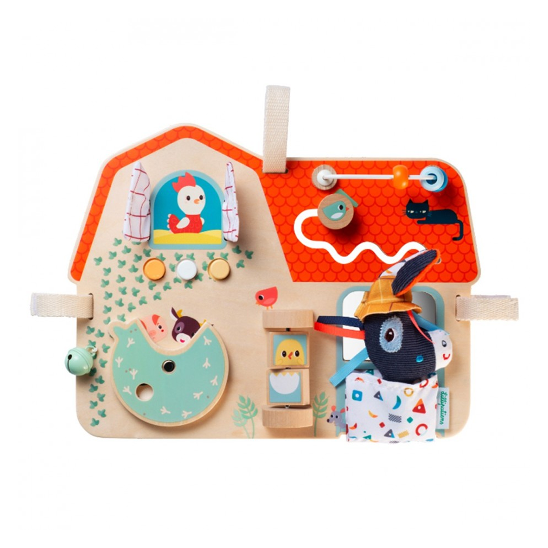 Panou din lemn cu activități cu animăluțe de la fermă, Lilliputiens