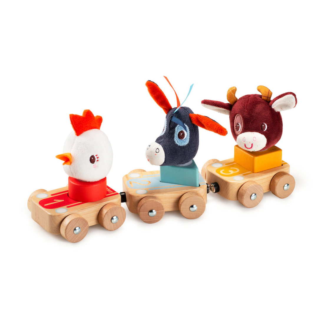 Masinuțe de la fermă din lemn și textil cu asocierea formelor geometrice și a culorilor, Lilliputiens