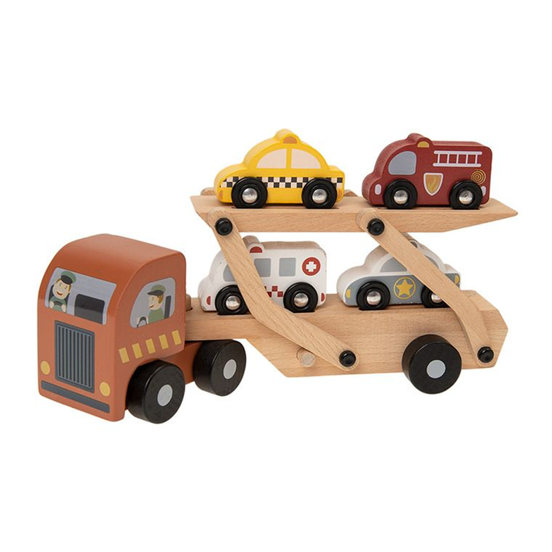 Camion de tractare din lemn cu 4 mașinuțe, Smiki