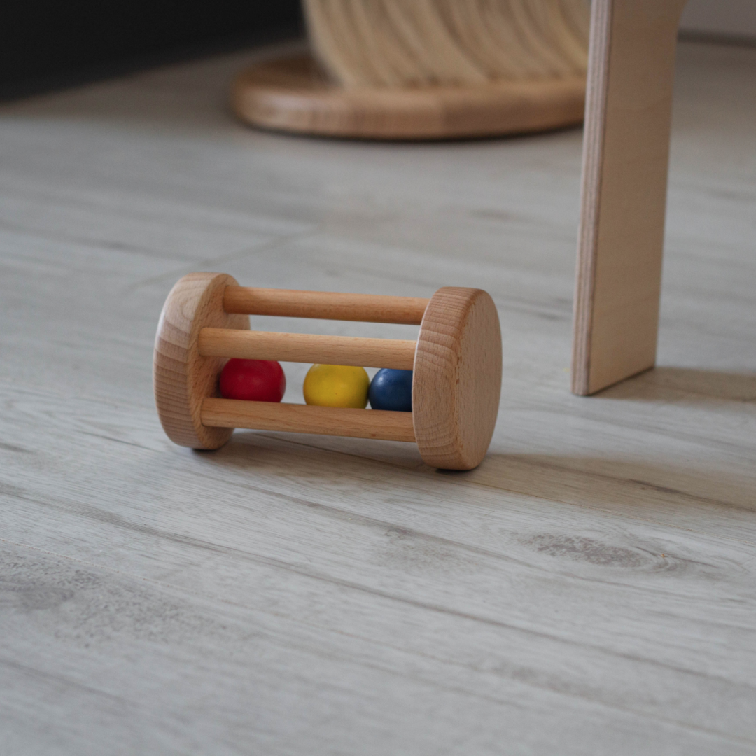 Cilindru cu mingi Montessori din lemn pentru dezvoltarea motricității grosiere, Bavka - Jucărie Puzzle