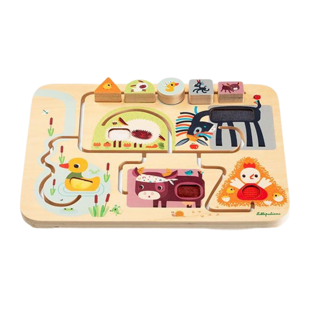 Panou din lemn cu activități Ferma, Lilliputiens - Jucărie Montessori