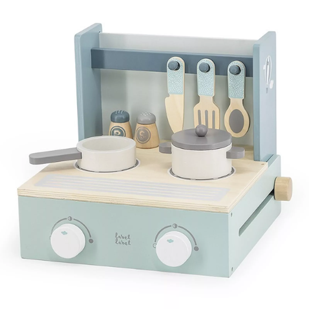 Aragaz pliabil din lemn cu accesorii, Label Label - Jucărie Montessori